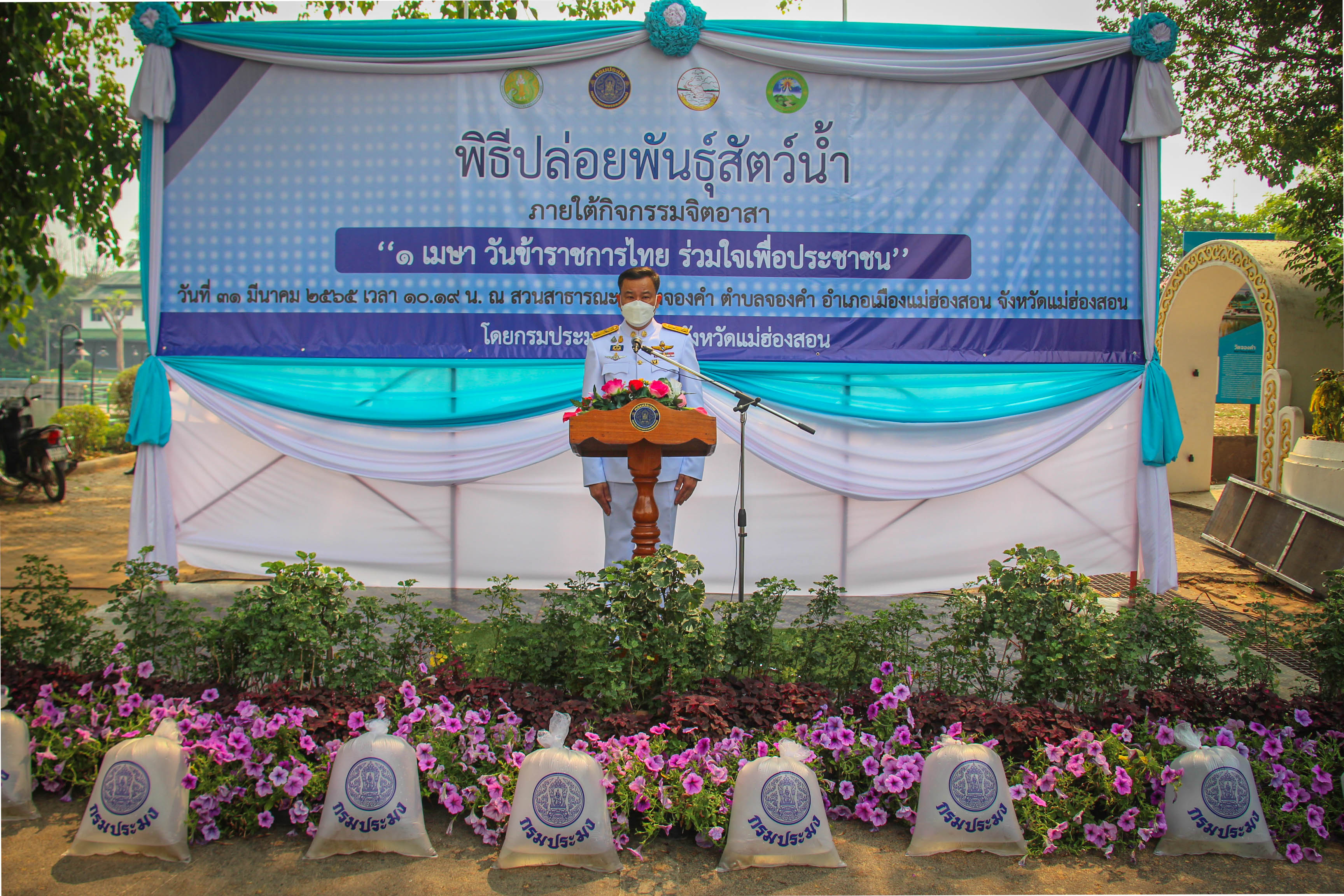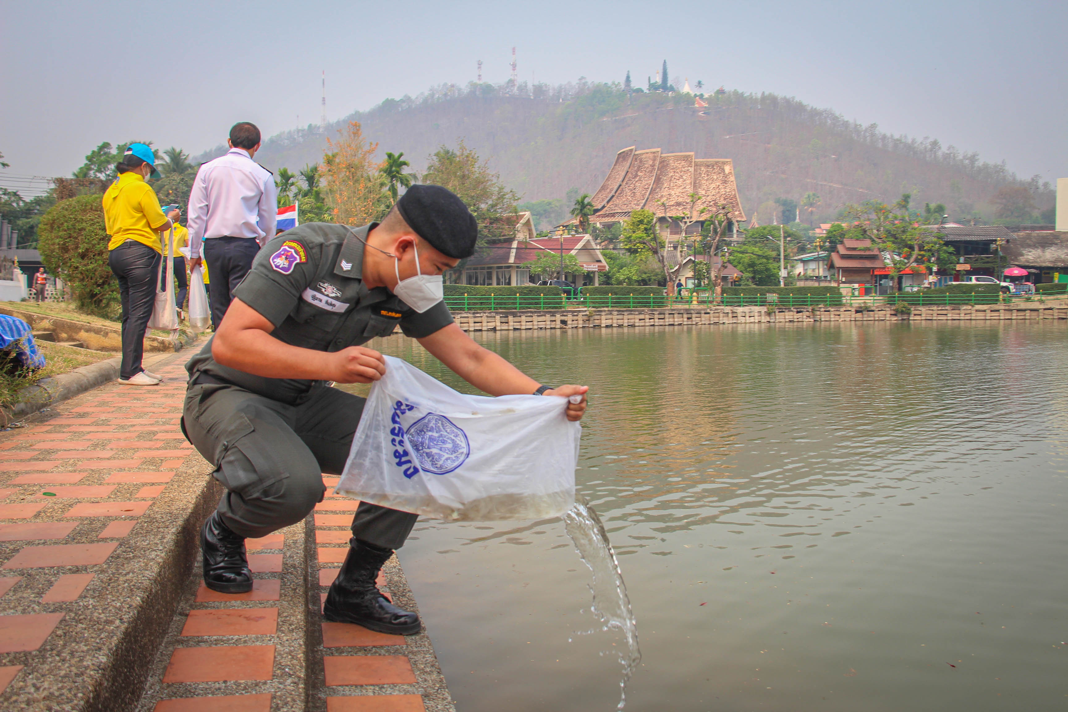 ........เมื่อ ๓๑๑๐๑๙ มี.ค.๖๕ โดยการอำนวยการของ พ.ต.ท.ธวัชชัย สุรินต๊ะ ผบ.ร้อย ตชด.๓๓๖ มอบหมายให้ ส.ต.อ.ปฏิภาณ สันติสุข ผบ.หมู่ กก.ตชด.๓๓ / จนท.กร.ร้อย ตชด.๓๓๖ พร้อมกำลังพลรวม ๓ นาย ร่วมพิธีปล่อยพันธุ์สัตว์น้ำ ภายใต้กิจกรรมจิตอาสา “๑ เมษา วันข้าราชการไทย ร่วมใจเพื่อประชาชน” ณ สวนสาธารณะหนองจองคำ ต.จองคำ อ.เมือง จว.แม่ฮ่องสอน โดยมี นายสืบพงษ์ นิ่มพูลสวัสดิ์ รองผู้ว่าราชการจังหวัดแม่ฮ่องสอน เป็นประธาน และมีผู้เข้าร่วมกิจกรรมในครั้งนี้ ๒๐๐ คน