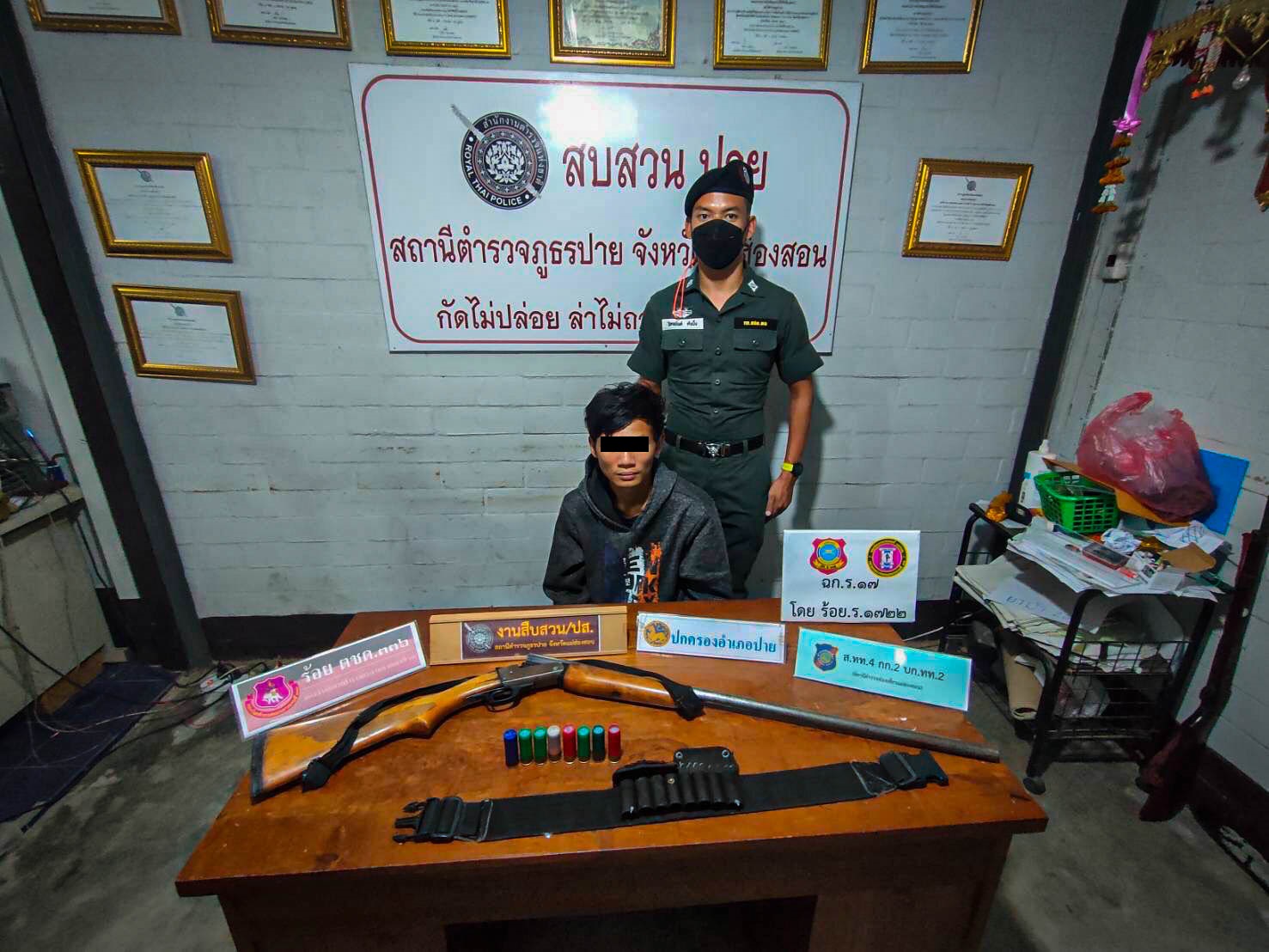 - อาวุธปืนลูกซองยาว จำนวน ๑ กระบอก