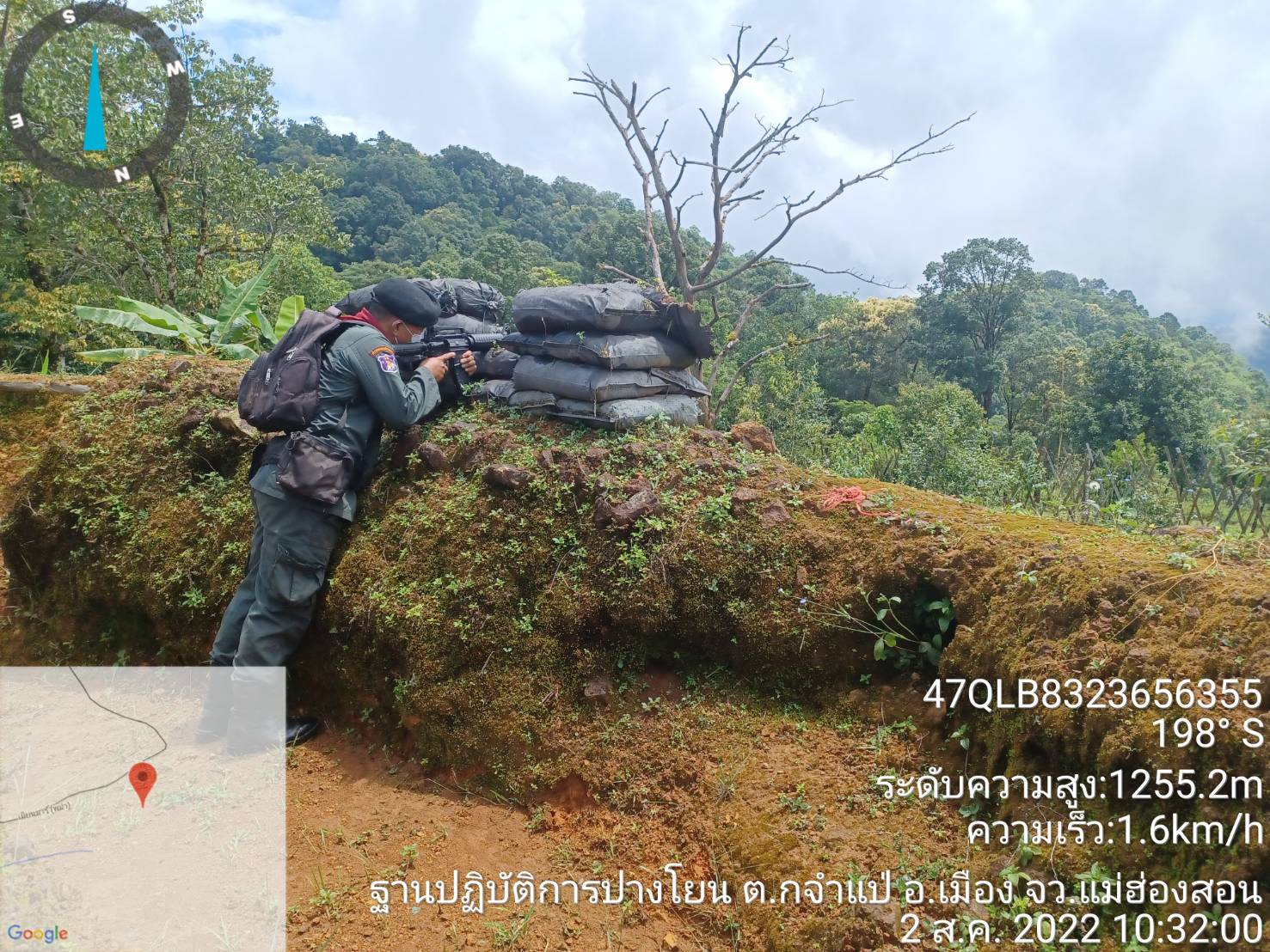 | ......... เมื่อ ๐๒๑๐๐๕ ส.ค.๒๕๖๕  ร.ต.ท.สุทัศน์ สมฝั้น รอง สว.(ป)กก.ตชด.๓๓  หน.ชป.ปางโยน ต.หมอกจำแป่ อ.เมือง จว.แม่ฮ่องสอน นำกำลังพล ๗  นาย ทำการซ้อมแผนเผชิญเหตุ ดังนี้-แบ่งขอบเขตพื้นที่การยิง  ทำการยิงตอบโต้ให้กับกำลังพลแต่ละนาย