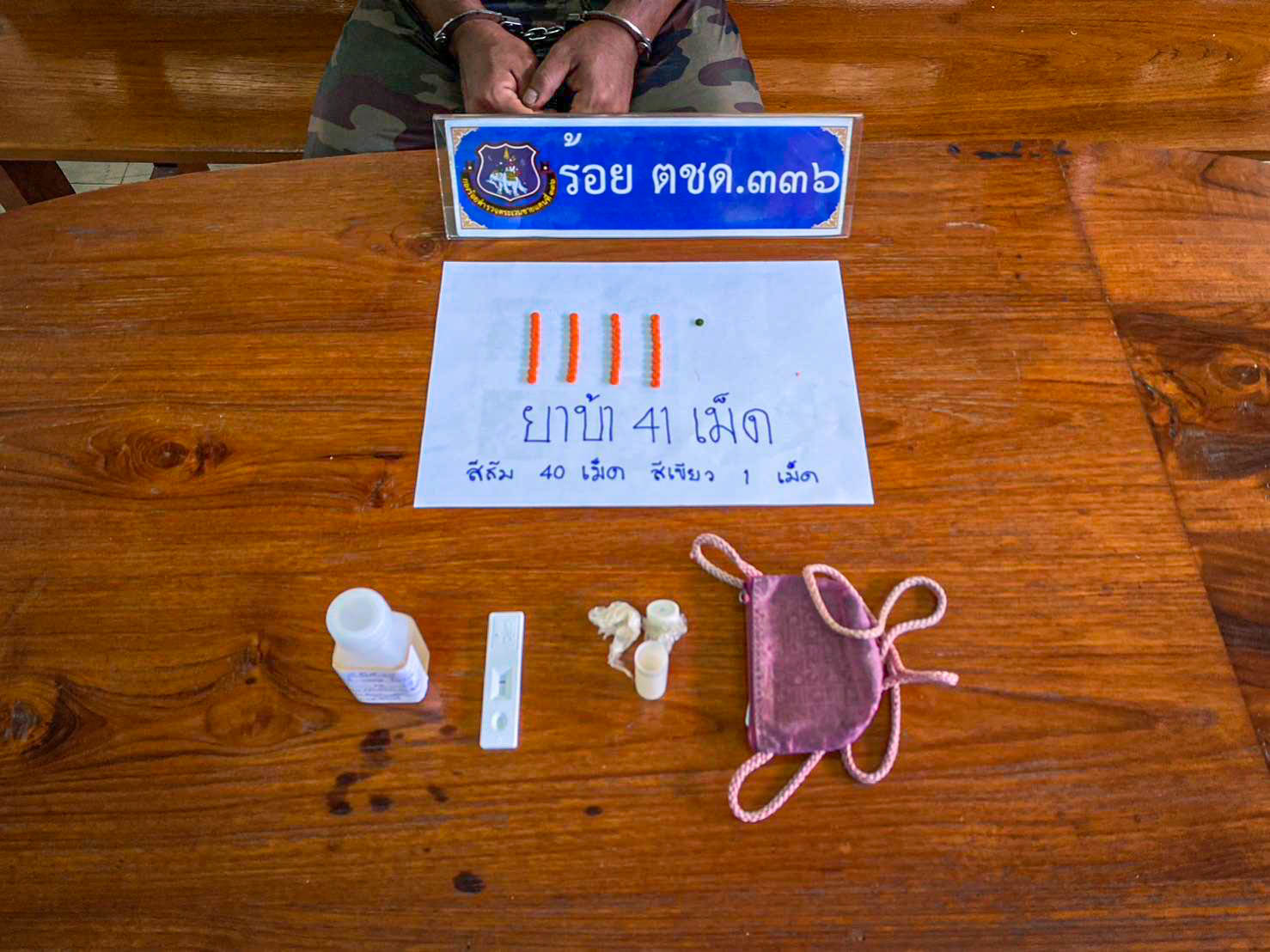 - ยาเสพติดให้โทษประเภทที่ ๑ เมทแอมเฟตามีน (ยาบ้า) จำนวน ๔๑ เม็ด