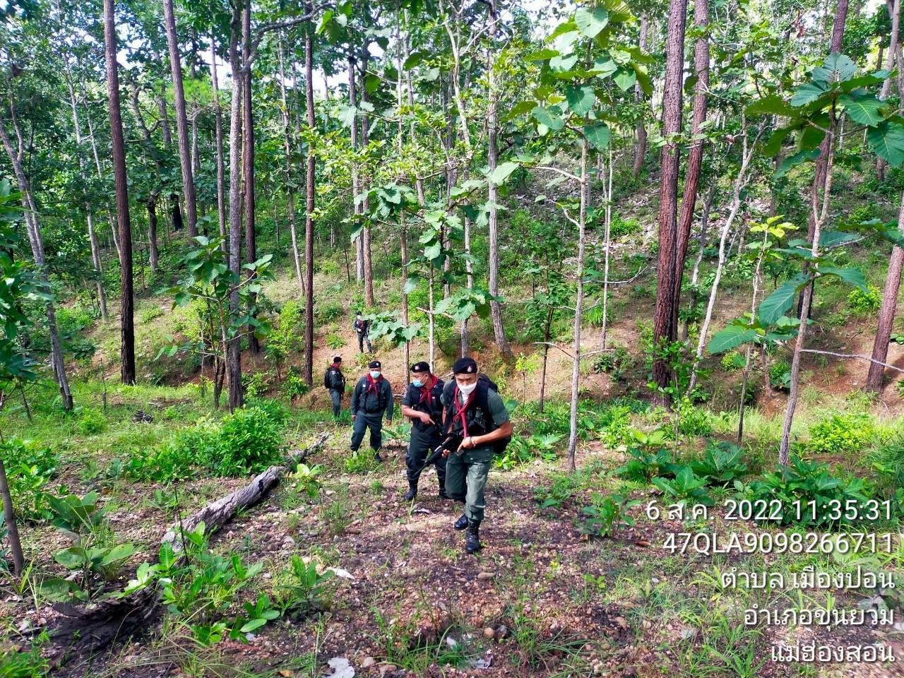 | ......... เมื่อ ๐๖๐๙๓๐ ส.ค. ๒๕๖๕  ร.ต.อ.ยอดชัย สร้อยเพชร หน.ชป.ขุนยวม ต.ขุนยวม  อ.ขุนยวม จว.แม่ฮ่องสอน นำกำลังพลจำนวน ๕ นาย ออกทำการลาดตระเวน ตาม  เส้นทาง-ช่องทางธรรมชาติ ในพื้นที่รับผิดชอบ  เพื่อระวังป้องกันป้องกันการลักลอบค้ายาเสพติด การลักลอบตัดไม้ทำลายป่า  และการลักลอบหลบหนีเข้าเมืองโดยผิดกฏหมาย ณ ช่องทางธรรมชาติ บ้านแม่ลาก๊ะ  ตำบลเมืองปอน  อำเภอขุนยวม  จว.แม่ฮ่องสอน   พิกัด ๒ จุดจุดที่๑ N ๒๐๖๗๓๒๐.๑๓๘    E ๓๙๑๐๘๕.๒๙๗