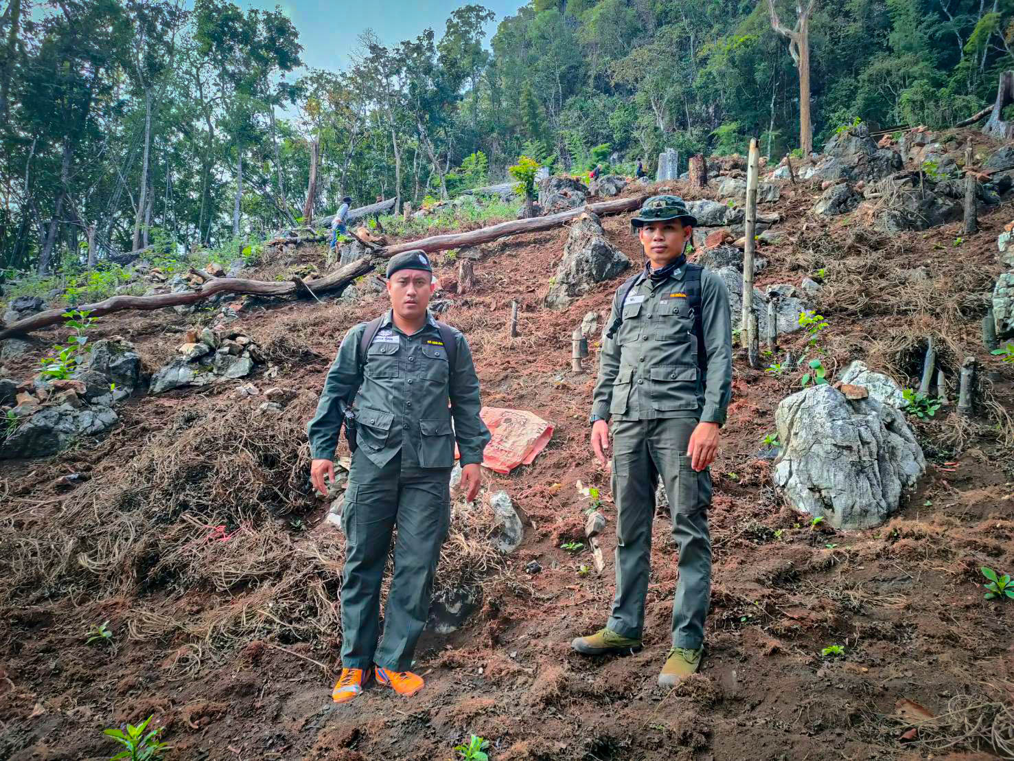 ร่วมกันตรวจสอบพื้นที่ถูกบุกรุกบริเวณป่าบ้านน้ำบ่อสะเป่ หมู่ที่ ๓ ตำบลสบป่อง อำเภอปางมะผ้า จังหวัดแม่ฮ่องสอน พิกัดที่ E ๔๑๓๒๙๙ N ๒๑๕๔๔๒๕ จำนวน ๓ – ๐ - ๕๗ ไร่ แต่ไม่พบผู้กระทำผิดอยู่ในพื้นที่แต่อย่างใด จึงร่วมกันลงบันทึกตรวจยึดส่งพนักงานสอบสวน สภ.ปางมะผ้าเพื่อหาตัวผู้กระทำผิดมาดำเนินคดีตามกฎหมายต่อไป