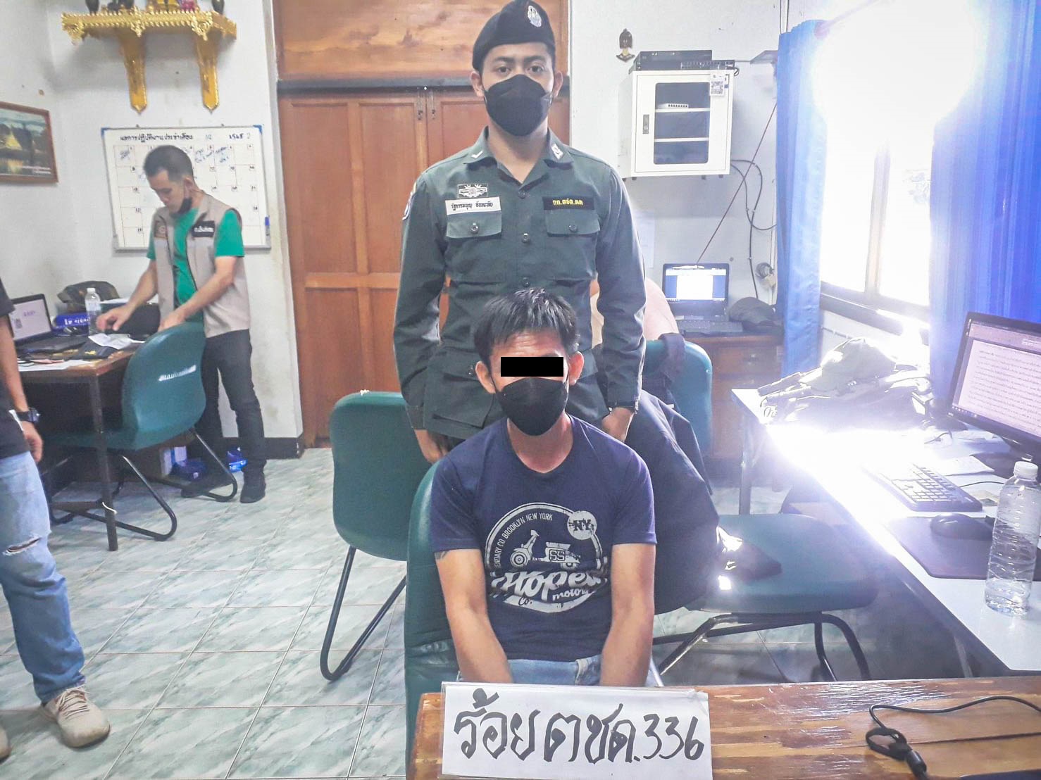 | ......... เมื่อ ๐๙๑๓๓๐ ก.ค.๖๕ ร.ต.อ.สำเริง ชำนาญ รอง  ผบ.ร้อย ตชด.๓๓๖ พร้อมกำลังพลรวม ๕ นาย บูรณาการร่วม เจ้าหน้าที่ตำรวจ  สภ.เมืองเเม่ฮ่องสอน, เจ้าหน้าที่ตำรวจ ตม.จว.เเม่ฮ่องสอน, เจ้าหน้าที่ทหาร  ฉก.ร.๗, เจ้าหน้าที่ทหาร ร้อย.ร.๗๑๑ และ  เจ้าหน้าที่ตำรวจท่องเที่ยว จว.เเม่ฮ่องสอน ได้ร่วมกันจับกุม นายประมวล ยะกันมูล (อายุ ๔๕  ปี) เลขบัตรประจำตัวประชาชน ๓-๕๐๑๓-๐๐๗๕๔-๑๒-๕ ที่อยู่ ๘/๒ หมู่ ๗  ต.เเช่ช้าง อ.สันกำเเพง จ.เชียงใหม่  พร้อมด้วยของกลาง รถยนต์กระบะ ยี่ห้อมิตซูบิชิ  สีขาว หมายเลขทะเบียน ยง ๙๙๖๕ เชียงใหม่ จำนวน ๑ คัน โดยกล่าวหาว่า ให้การช่วยช่วยเหลือ  หรือซ่อนเร้นด้วยประการใดๆ  เพื่อให้คนต่างด้าวที่หลบหนีเข้าเมืองโดยผิดกฎหมายพ้นจากการจับกุม