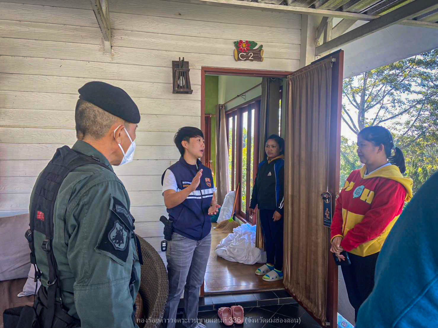 เมื่อ ๑๒๐๙๐๐ โดยการอำนวยการของ พ.ต.ท.ธวัชชัย สุรินต๊ะ ผบ.ร้อย ตชด.๓๓๖ ได้มอบหมายให้ ร.ต.อ.มงคล มีคุณ ผบ.มว.ตชด.๓๓๖๑ / หน.ชป.แม่ของร้อย ตชด.๓๓๖ พร้อมกำลังพลรวม ๕ นาย ร่วมกับ จนท.ตม.แม่ฮ่องสอน, จนท.ตร.ท่องเที่ยว, จนท.ตร.สภ.ปาย เข้าตรวจสอบสถานประกอบการโรงแรม เพื่อตรวจสอบค้นหาบุคคลบุคคลต่างด้าวที่กระทำผิดกฎหมาย ในพื้นอำเภอปาย (ผลการปฏิบัติ : ไม่พบกลุ่มบุคคลต่างด้าวที่กระทำผิดกฎหมายแต่อย่างใด)