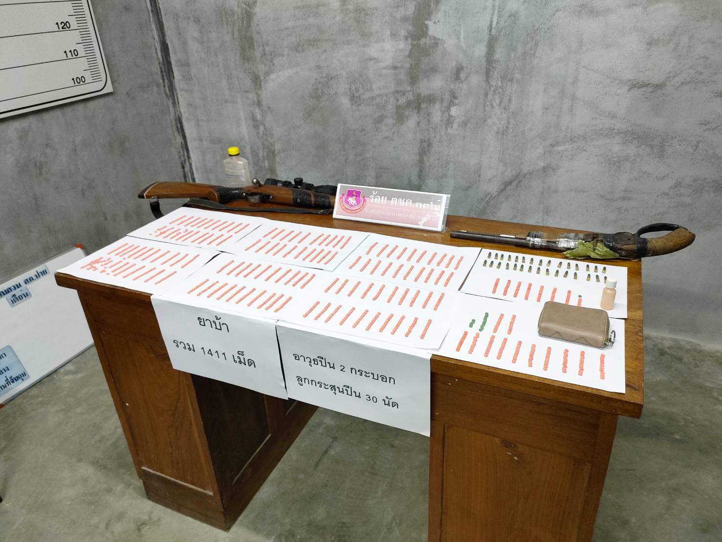 - อาวุธปืนยาว .๒๒ ไม่มีทะเบียนจำนวน ๑ กระบอก