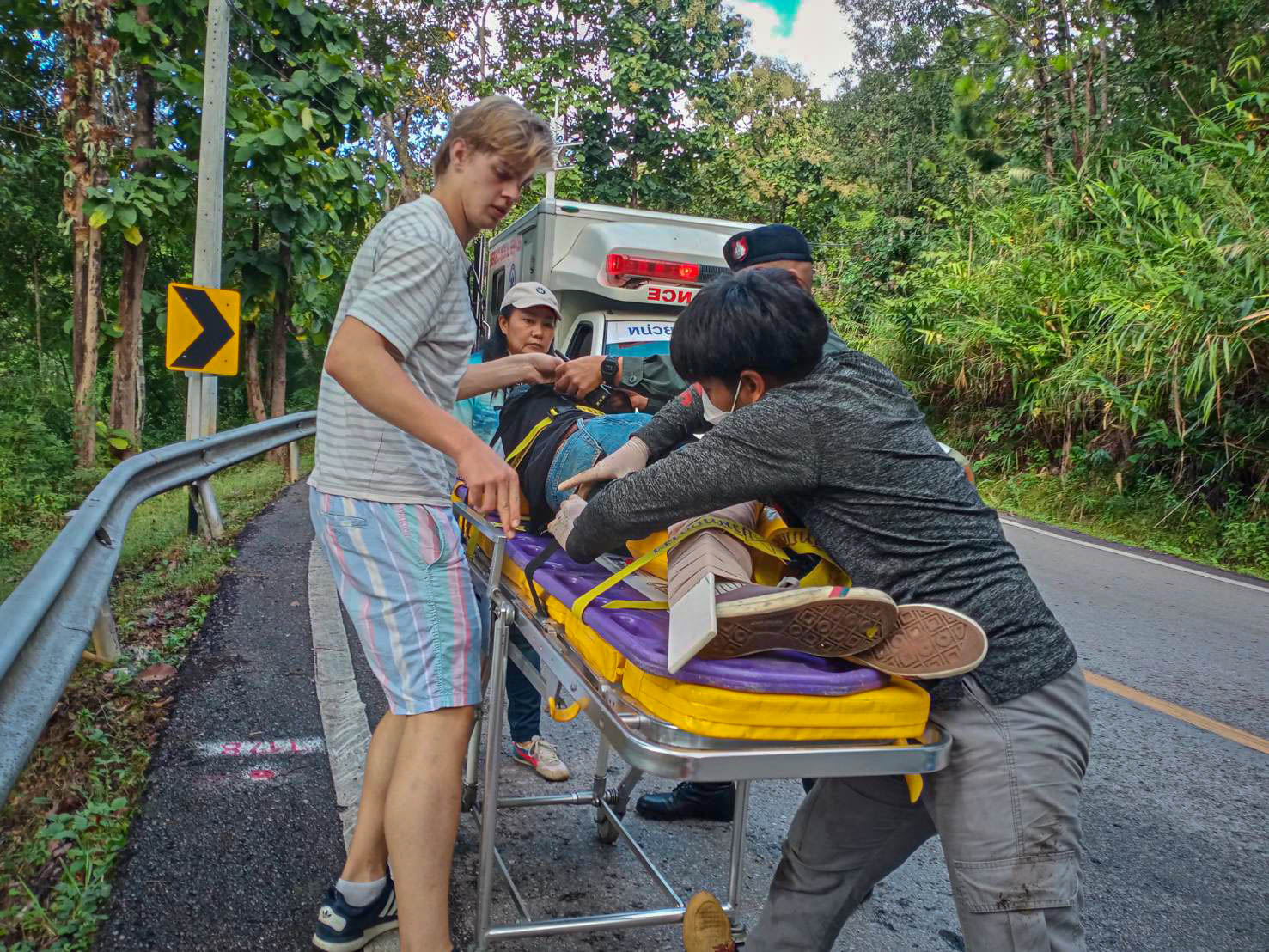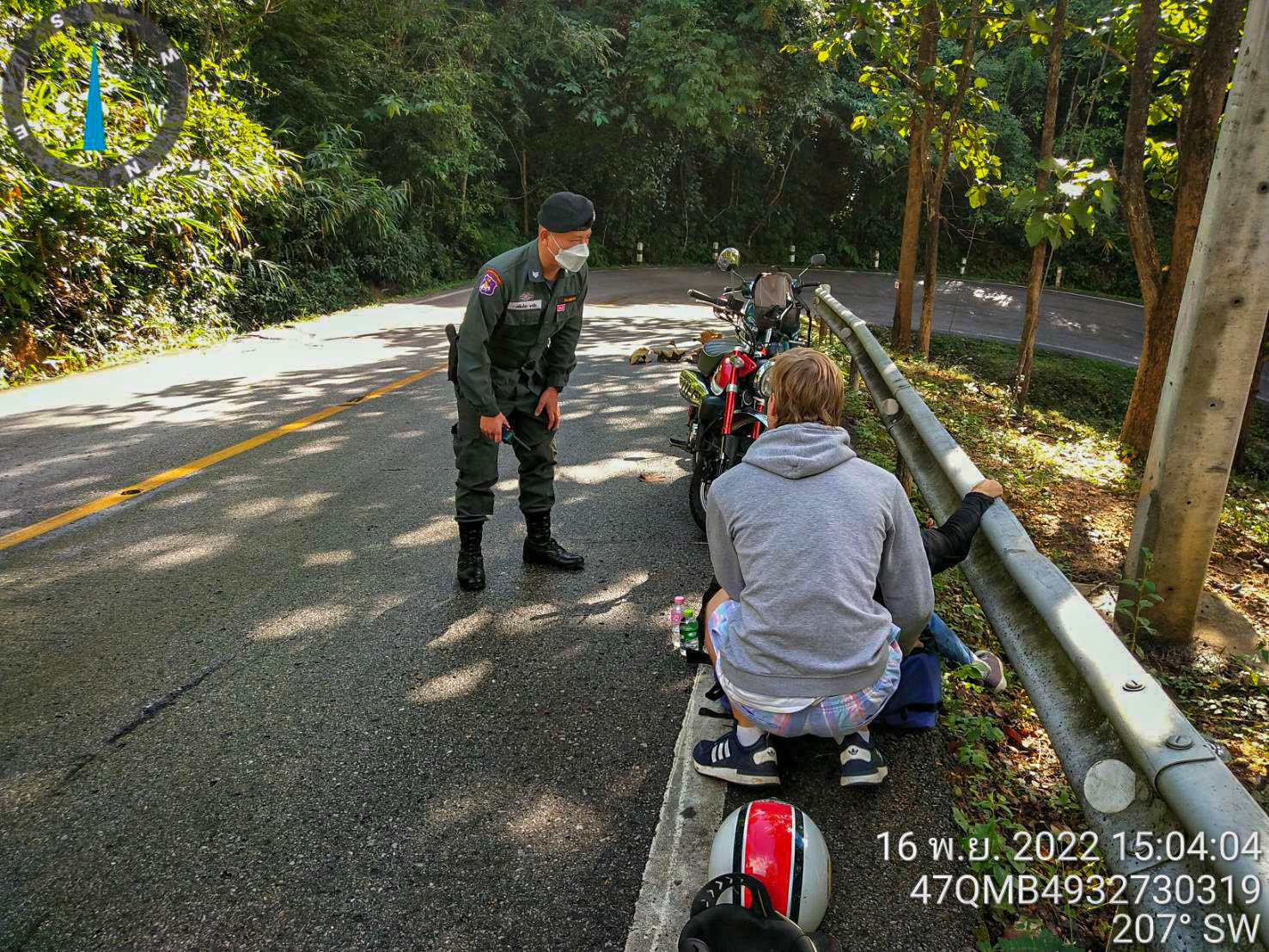 เมื่อ ๑๖๑๕๐๐ พ.ย.๖๕ โดยการอำนวยการของ พ.ต.ท.ธวัชชัย สุรินต๊ะ ผบ.ร้อย ตชด.๓๓๖ มอบหมายให้ ร.ต.ต.วิเชียร พรมรัตน์ รอง สว.(ป)กก.ตชด.๓๓ / หน.จุดตรวจแม่ปิง พร้อมกำลังพลรวม ๓ นาย ได้ให้ความช่วยเหลือและอำนวยความสะดวกด้านจราจรเหตุรถจักรยานยนต์เสียหลักแฉลบลงข้างทาง รถยี่ห้อ HONDA สีแดง หมายเลขทะเบียน ๑กฎ ๔๑๘๙ ลำพูน ขับขี่โดย MR.CRAIG ARON ECKERT สัญชาติ อเมริกา (อายุ ๕๖ ปี) หมายเลขบัตรประจำตัว ๔๙๕๓๖๘๙๙๕ ที่อยู่ ๑๒๙ หมู่ที่ ๒ ต.เวียงเหนือ อ.ปาย จว.แม่ฮ่องสอน โดยอุบัติเหตุครั้งนี้มีผู้ได้รับบาดเจ็บ ๑ ราย โดยมีรูปขาผิดรูป ขาหักตรงบริเวณขาขวา และมีแผลถลอกตามร่างเล็กน้อย บริเวณหลักกิโลเมตรที่ ๗๙ บนถนนทางหลวงหมายเลข ๑๐๙๕ ต.แม่ฮี้ อ.ปาย จว.แม่ฮ่องสอน ทางจุดตรวจแม่ปิง จึงได้ประสานหน่วยกู้ชีพ อบต.แม่ฮี้ เพื่อนำผู้ได้รับบาดเจ็บส่งเข้ารักษาตัวโรงพยาบาลปาย ต่อไป