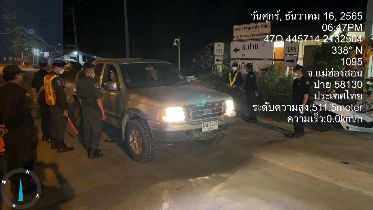 เมื่อ ๑๖๑๘๐๐-๑๖๒๐๐๐ ธ.ค. ๖๕ ร.ต.ต.วิเชียร พรมรัตน์ รอง สว.(ป) กก.ตชด.๓๓/ รรท.หน.จุดตรวจแม่ปิง พร้อมกำลังพลจุดตรวจแม่ปิงร่วมกับเจ้าหน้าที่หน่วยป้องกันรักษาป่าที่ มส.๑ และ เจ้าหน้าที่ ปศุสัตว์(อำเภอปาย) ได้ตั้งจุดตรวจจุดสกัด เพื่อตรวจยึดสิ่งผิดกฎหมาย, ป้องกันปราบปรามอาชญากรรมตามแนวชายแดน, อำนวยความสะดวกให้กับประชาชน และรักษาความปลอดภัยนักท่องเที่ยวที่ใช้เส้นทาง บริเวณหน้าจุดตรวจจุดสกัดแม่ปิง บนถนนทางหลวงหมายเลข ๑๐๙๕ ต.แม่ฮี้ อ.ปาย จว.แม่ฮ่องสอน ผลการปฏิบัติไม่พบผู้กระทำผิดกฎหมายแต่อย่างใด