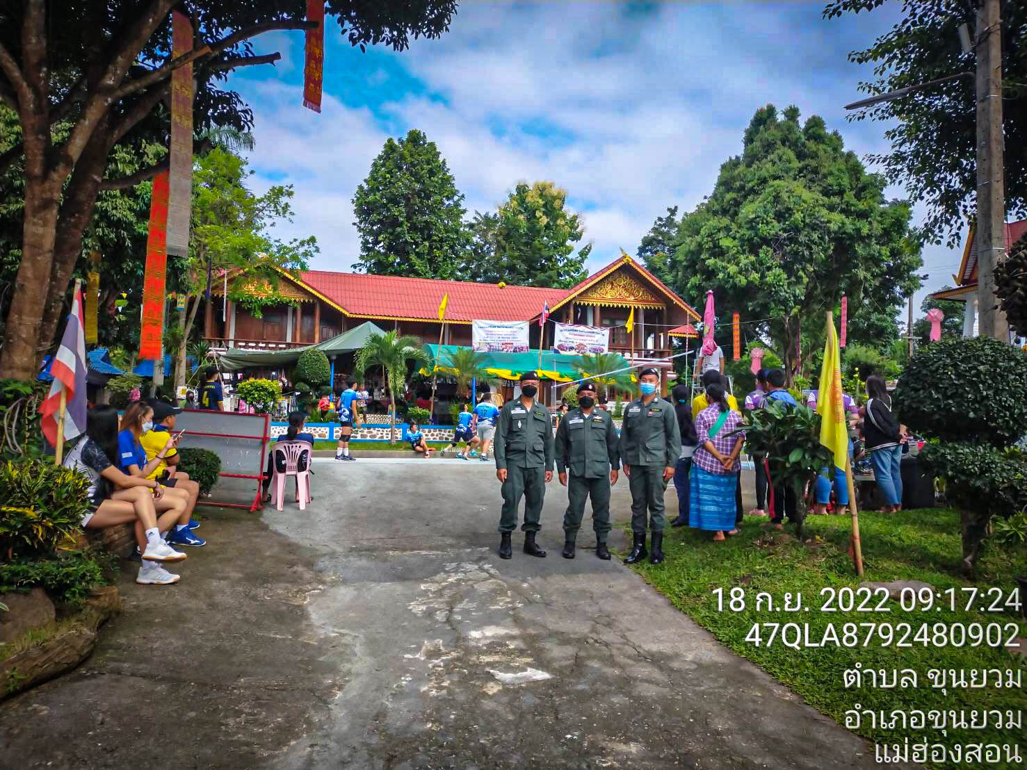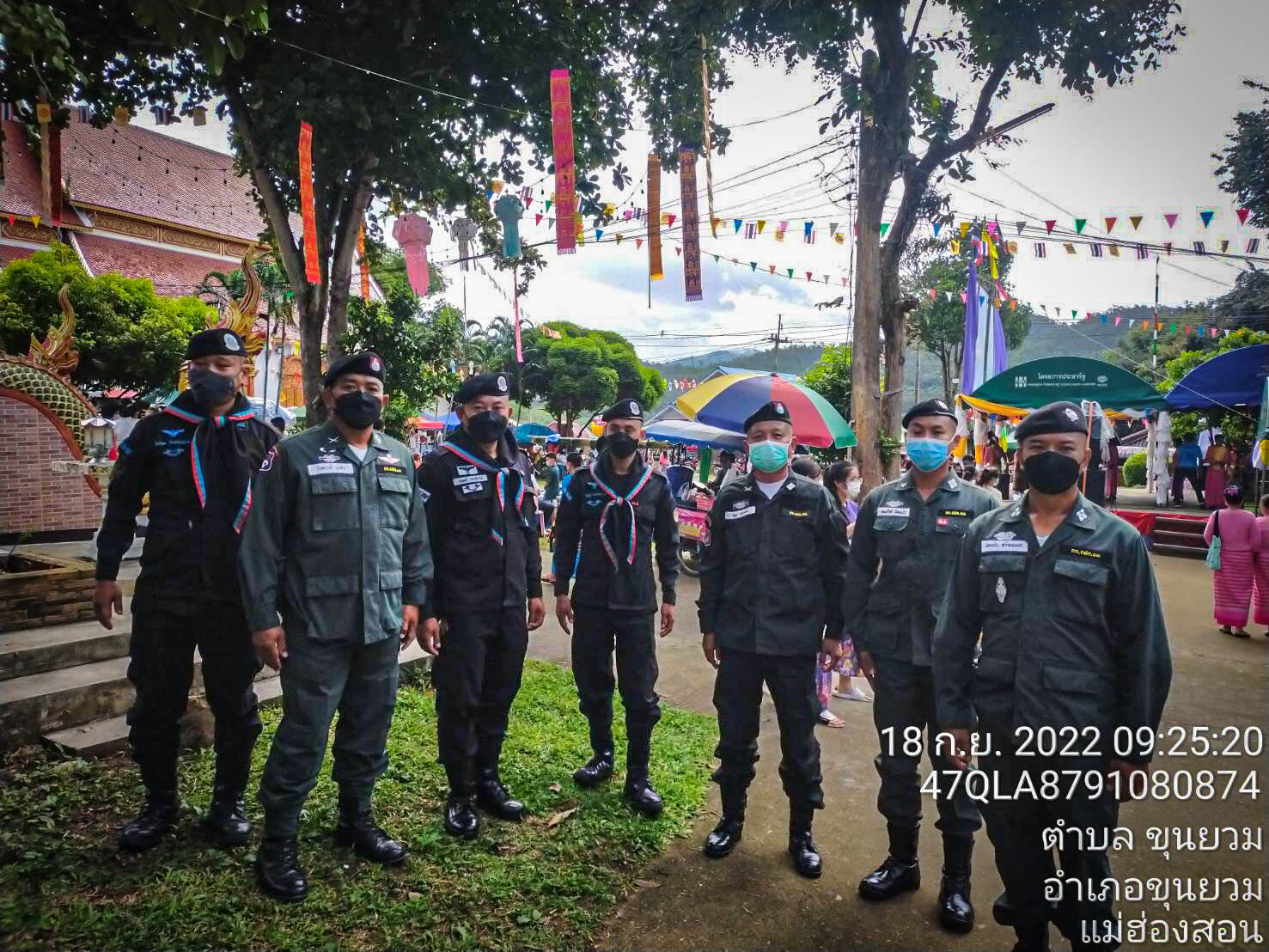 ......... เมื่อ ๑๘๐๘๓๐ ก.ย.๖๕ ร.ต.อ.ยอดชัย สร้อยเพชร ผบ.มว.ตชด.๓๓๖ / หน.ชป.ขุนยวม ร้อย ตชด.๓๓๖ พร้อมกำลังพลรวม ๕ นาย ได้ทำการรักษาความปลอดภัยและอำนวยความสะดวกในงานประเพณีการทำบุญตานก๋วยสลากภัต ประจำปี ๒๕๖๕ ณ วัดโพธาราม ต.ขุนยวม อ.ขุนยวม จว.แม่ฮ่องสอน ผลการปฏิบัติเป็นไปด้วยความเรียบร้อย