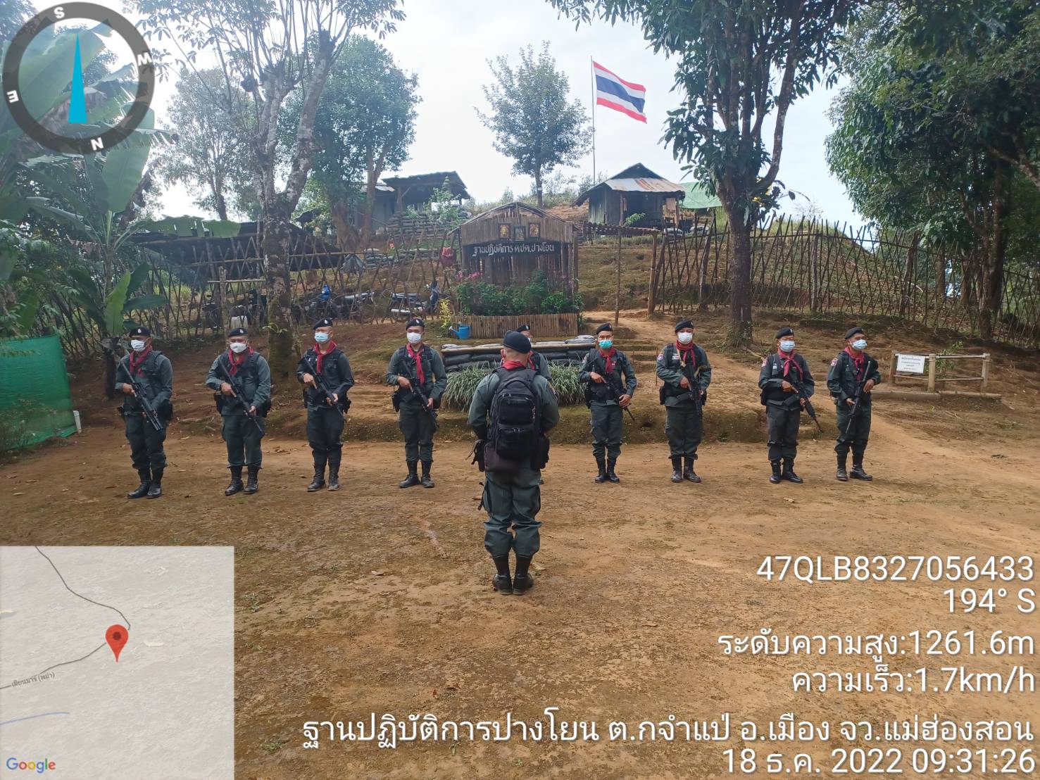อ.เมือง จว.แม่ฮ่องสอน นำกำลังพลจำนวน ๘ นาย ออกทำการลาดตระเวน ตามเส้นทางฐานปฏิบัติการ-ช่องทางธรรมชาติ ในพื้นที่รับผิดชอบ เพื่อระวังป้องกันที่ตั้งหน่วย/ป้องกันการก่อวินาศกรรม/ป้องกันการลักลอบค้ายาเสพติด/อาวุธสงคราม/การลักลอบตัดไม้ทำลายป่า/