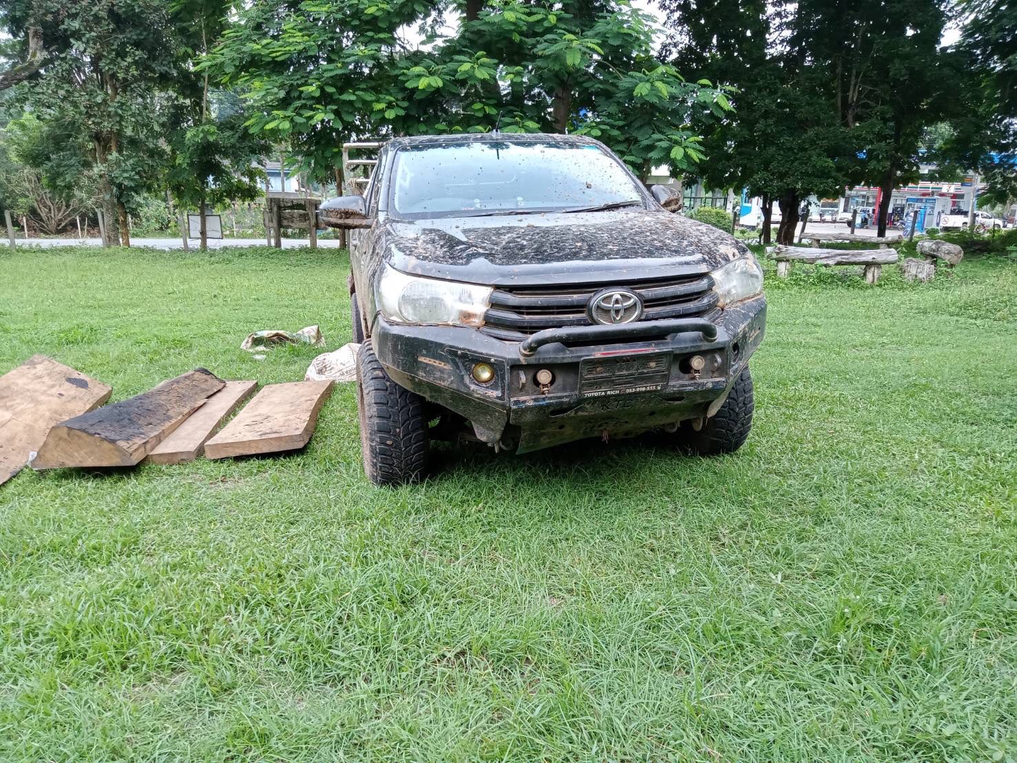 - รถยนต์กระบะ ๑ คัน ยี่ห้อ TOYOTA HILUX REVO สีดำ หมายเลขเครื่อง C๗B๐๗A๒๐ หมายเลขทะเบียน บง ๕๙๑ มส.
