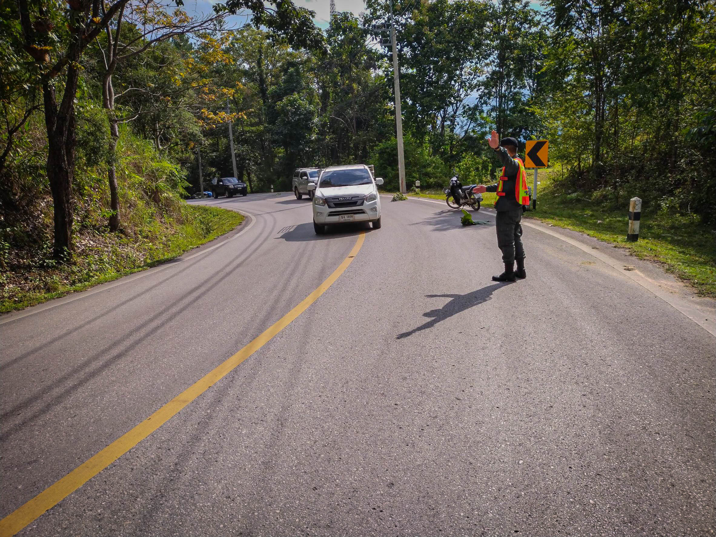 เมื่อ ๒๔๑๕๑๐ ต.ค.๖๕ โดยการอำนวยการของ พ.ต.ท.ธวัชชัย สุรินต๊ะ ผบ.ร้อย ตชด.๓๓๖ มอบหมายให้ ร.ต.ต.วิเชียร พรมรัตน์ รอง.สว.(ป) กก.ตชด.๓๓ พร้อมกำลังพลรวม ๓ นาย ได้ให้ความช่วยเหลือและอำนวยความสะดวกด้านจราจร เหตุรถพ่วง ยี่ห้ออีซูซุ หมายเลขทะเบียน ๗๐-๐๑๑๙ แม่ฮ่องสอน ขับขี่โดย นายเสกสรร สุริยาทวีเลิศ หมายเลขบัตรประชาชน ๘-๕๘๐๗-๘๔๐๐๔-๙๗-๙ ที่อยู่ ๗/๓ หมู่ที่ ๑๐ ต.บ้านกาศ อ.แม่สะเรียง จว.แม่ฮ่องสอน จอดเสีย ซึ่งกีดขวางเส้นทางการจราจร บริเวณหลักกิโลเมตรที่ ๗๙ ถนนทางหลวงหมายเลข ๑๐๙๕ ต.แม่ฮี้ อ.ปาย จว.แม่ฮ่องสอน