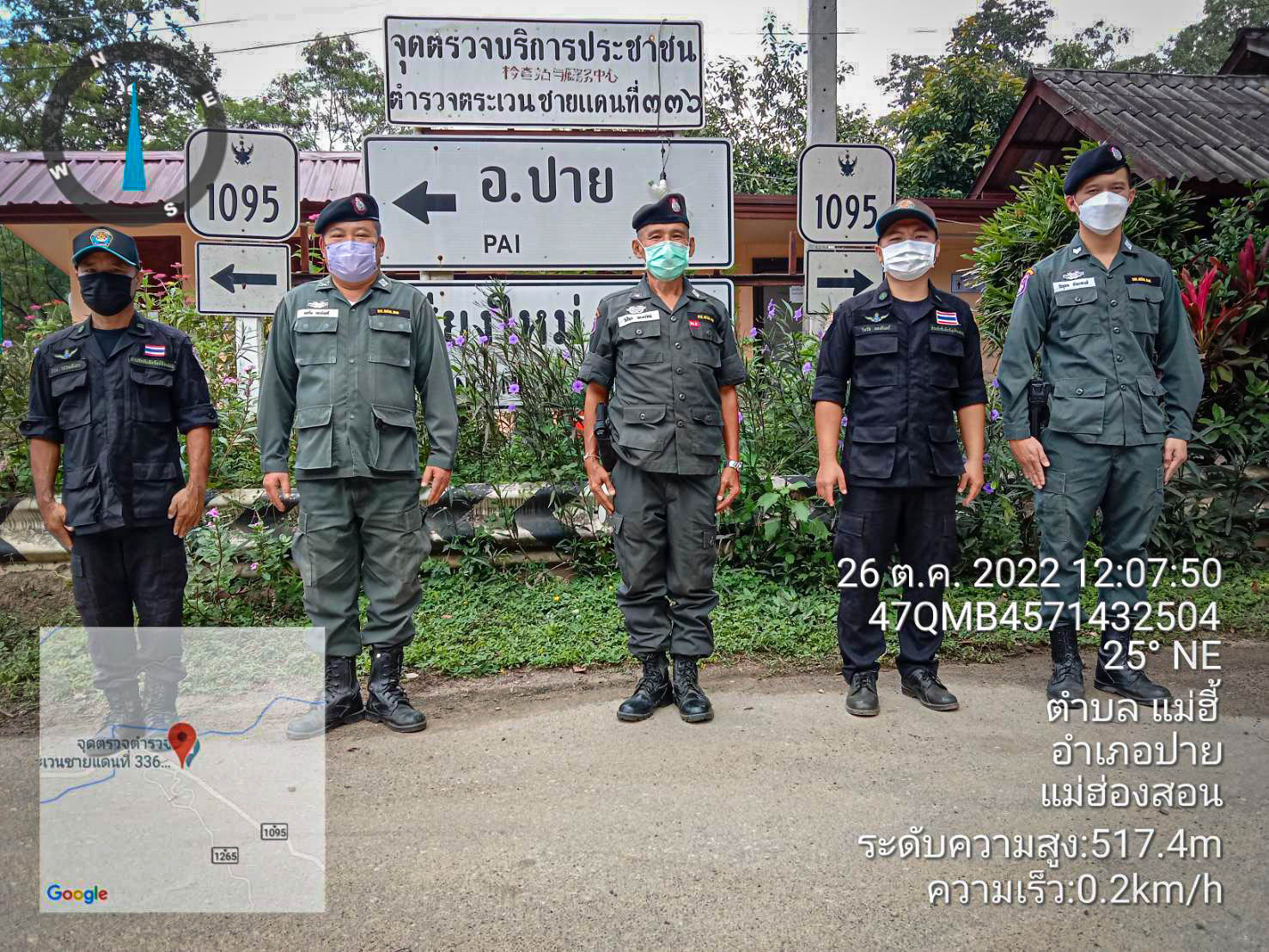 เมื่อ ๒๖๐๙๐๐ ต.ค.๖๕ โดยการอำนวยการของ พ.ต.ท.ธวัชชัย สุรินต๊ะ ผบ.ร้อย ตชด.๓๓๖ มอบหมายให้ ด.ต.เชิดศักดิ์ แก้วนาง ผบ.หมู่ กก.ตชด.๓๓ พร้อมกำลังพลรวม ๓ นาย ร่วมกับ เจ้าหน้าที่ตำรวจ กก.สส.ภจว.มส ได้ตั้งจุดตรวจจุดสกัด เพื่อตรวจยึดสิ่งผิดกฎหมาย ป้องกันปราบปรามอาชญากรรมตามแนวชายแดน ตามนโยบายของรัฐบาลและสำนักงานตำรวจแห่งชาติ บริเวณจุดตรวจสามแยกทุ่งมะส้าน ต.ห้วยผา อ.เมือง จว.แม่ฮ่องสอน (พิกัด ๔๗Q LB๙๔๘๓๑ ๔๕๙๑๓) ผลการปฏิบัติไม่พบผู้กระทำผิดกฎหมายแต่อย่างใด