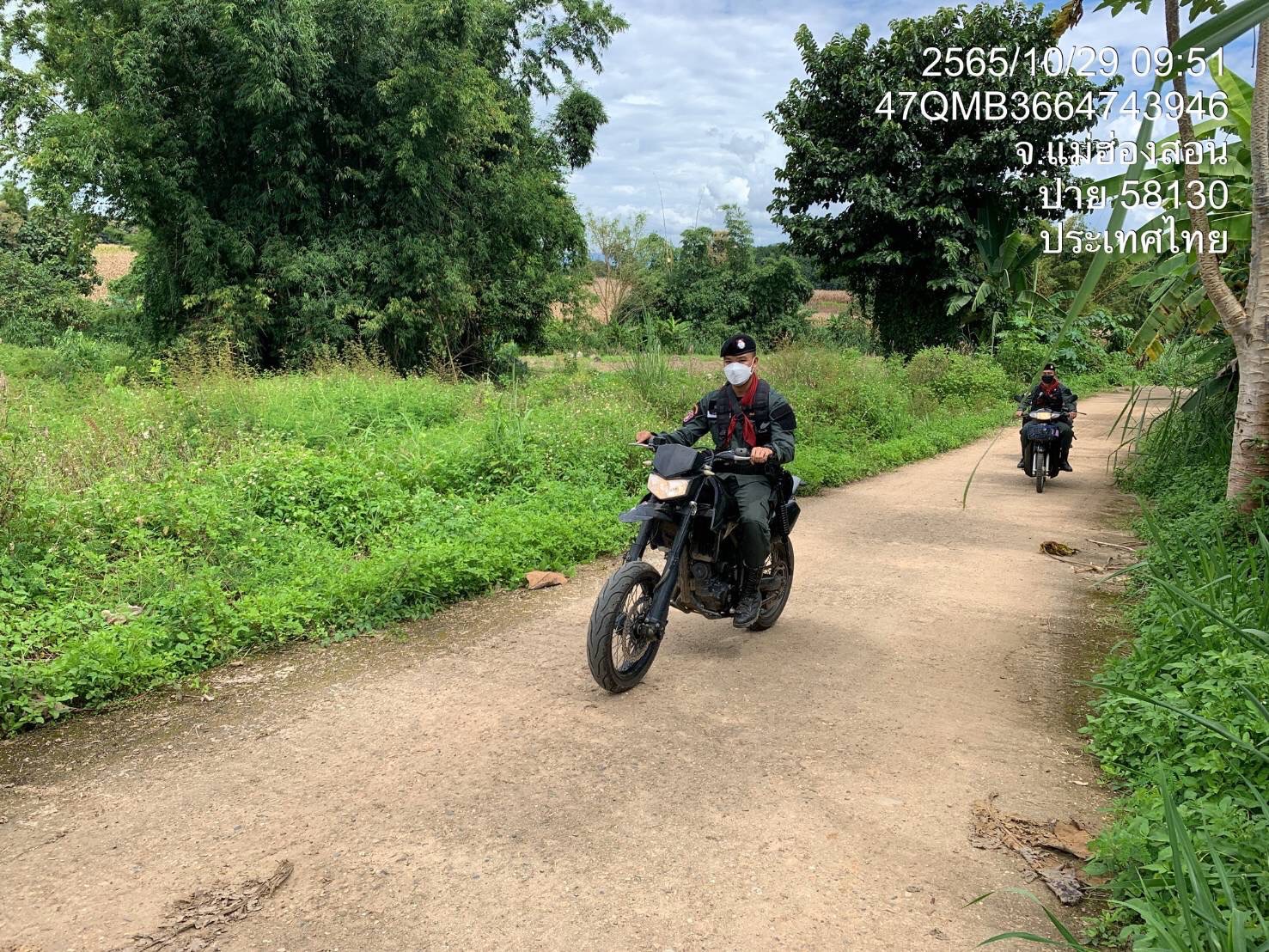 ออกทำการลาดตระเวน ตามเส้นทางในพื้นที่รับผิดชอบ บริเวณบ้านปหมอแปง ต.แม่นาเติง อ.ปาย จ.แม่ฮ่องสอน เพื่อระวังป้องกันที่ตั้งหน่วย/ป้องกันการก่อวินาศกรรม/ป้องกันการลักลอบค้ายาเสพติด/อาวุธสงคราม/