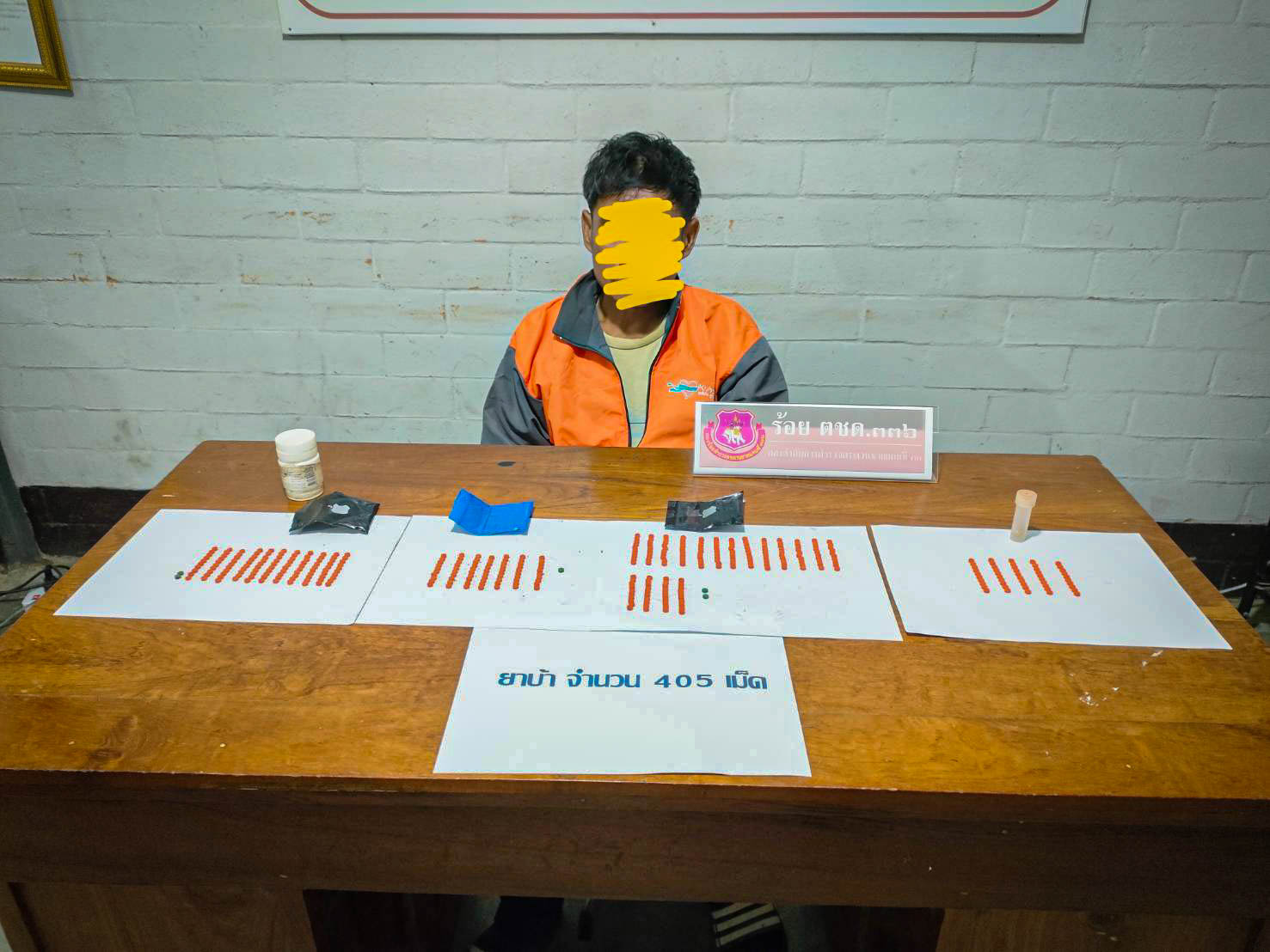 พร้อมด้วยของกลาง ยาเสพติดให้โทษประเภทที่ ๑ เมทแอมเฟตามีน (ยาบ้า) จำนวน ๔๐๕ เม็ด
