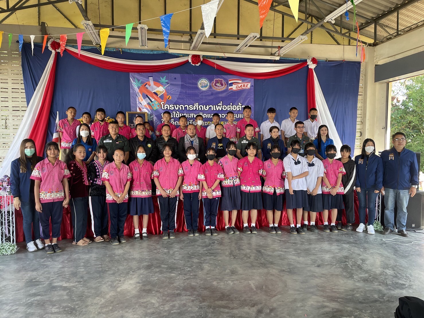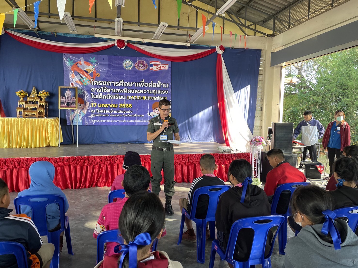 ......... เมื่อ ๑๗๐๙๓๐ ม.ค. ๒๕๖๖ โดยการอำนวยการของ พ.ต.ท. ธวัชชัย สุรินต๊ะ ผบ.ร้อย ตชด.๓๓๖ มอบหมายให้ ร.ต.อ.พฤกษ์ เวทย์สิทธิ์ รอง สว.(ป) กก.ตชด.๓๓ พร้อมพวกรวม ๔ นาย ร่วมกับองค์การบริหารส่วนจังหวัดแม่ฮ่องสอน ได้กระทำพิธีเปิดโครงการการศึกษาเพื่อต่อต้านการใช้ยาเสพติด(D.A.R.E.ประเทศไทย) ประจำภาคเรียนที่ ๒/๒๕๖๕ ให้แก่นักเรียนโรงเรียนบ้านเมืองแปง ต.เมืองแปง อ.ปาย จ.แม่ฮ่องสอน จำนวน ๑๑๖ คน ณ อาคารอเนกประสงค์ โรงเรียนบ้านเมืองแปง โดยมีนายสุริยันณ์ จีวงค์ รองประธานสภาองค์การบริการส่วนจังหวัดแม่ฮ่องสอนมาเป็นประธานในพิธีเปิด